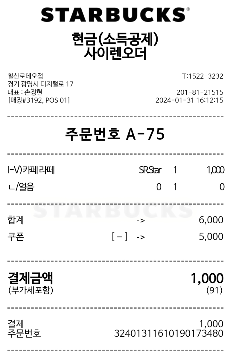 개인적으로 여기는 철산역 주변의 다른 스벅에 비해 30분 늦게 여는게 좀 아쉽다