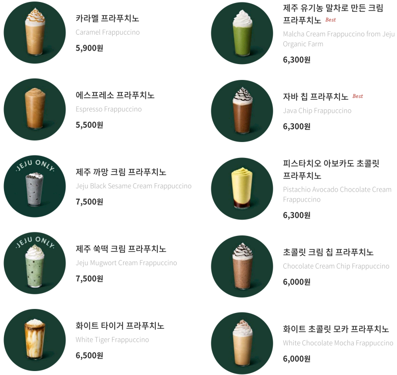 주로 자바칩 프라프치노를 많이 먹었었다.